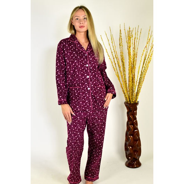 Flanelinė didelio tankio kokybiška pižama susideda iš dviejų dalių: susagstomos palaidinės ilgomis rankovėmis, pagrąžinta dailiai išformuota apykakle ir pižaminių flanelinių kelnių su minkšta guma aplink juosmenį. Ši pižamytė pagaminta iš natūralios medvilnės tankaus audinio puikiai sugeria drėgmę, švelni liesti, antialergiška. Labai tiks šaltais žiemos vakarais kaip namų rūbas