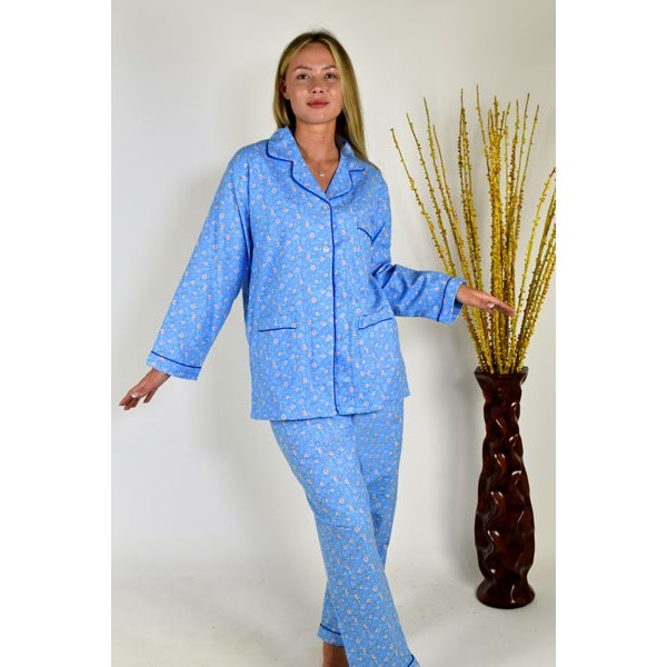 Flanelinė didelio tankio kokybiška pižama susideda iš dviejų dalių: susagstomos palaidinės ilgomis rankovėmis, pagrąžinta dailiai išformuota apykakle ir pižaminių flanelinių kelnių su minkšta guma aplink juosmenį. Ši pižamytė pagaminta iš natūralios medvilnės tankaus audinio puikiai sugeria drėgmę, švelni liesti, antialergiška. Labai tiks šaltais žiemos vakarais kaip namų rūbas
